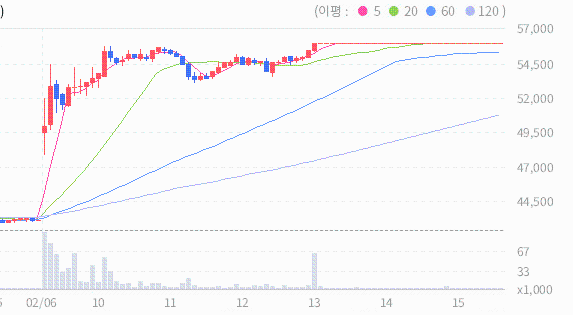 120일, 240일, 480일 이동평균선이 정배열을 이루고 있어 장기적으로 주식이 안정적인 상승 추세를 나타낼 가능성이 있다는 신호로 해석될 수 있습니다.