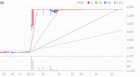 금일 종가가 장기 이동평균선을 돌파한 것은 주가의 강력한 지지선을 넘어선 긍정적인 신호로 해석할 수 있습니다. 이러한 모습은 향후 주가 흐름에 긍정적인 영향을 미칠 것으로 예상됩니다.