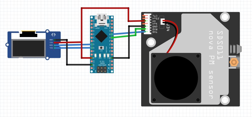 사용된 부품 :아두이노 나노, sds011 미세먼지 센서, oled 0.96inch