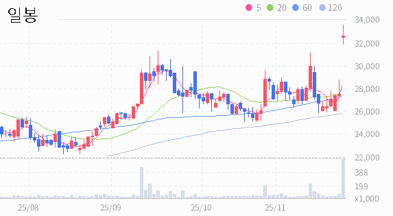 가비아의 2025.11.25 기준(KRX 장마감)현재 주가는 32650원이며, 이는 전일 종가인 27500원보다 5150원 상승한 결과를 보여주고 있습니다.