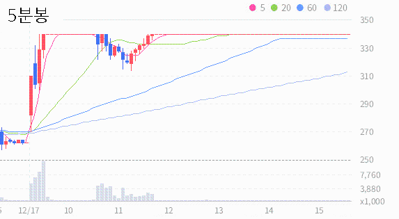 TS트릴리온의 2025.12.17 기준(KRX 장마감)현재 주가는 340원이며, 이는 전일 종가인 262원보다 78원 상승한 결과를 보여주고 있습니다.