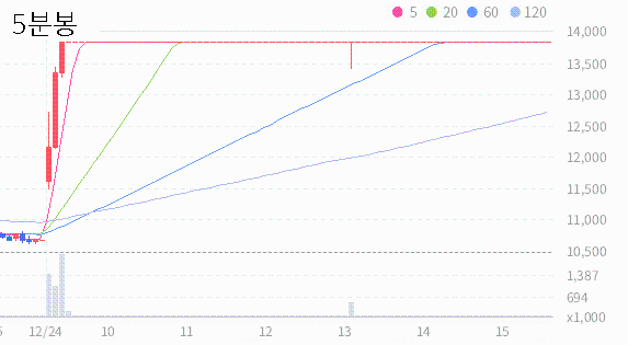 최근 5일 종가들의 평균은 11300원입니다.