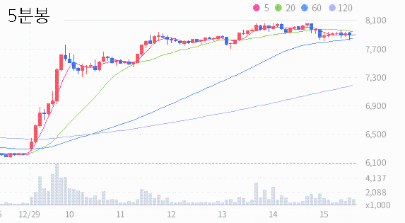 휴림로봇의 종가는 7980원이며 휴림로봇의 현재 주가는 장기적인 흐름을 나타내는 지표 중 하나인 240일 이동 평균선 위에 위치하고 있습니다. 이는 과거 240일 동안의 평균 주가를 나타내는 이동 평균선을 기준으로 주가가 위에 위치하고 있음을 의미합니다. 이러한 상황은 장기적인 관점에서 주가가 상승 추세에 있을 수 있다는 긍정적인 신호로 해석될 수 있습니다.