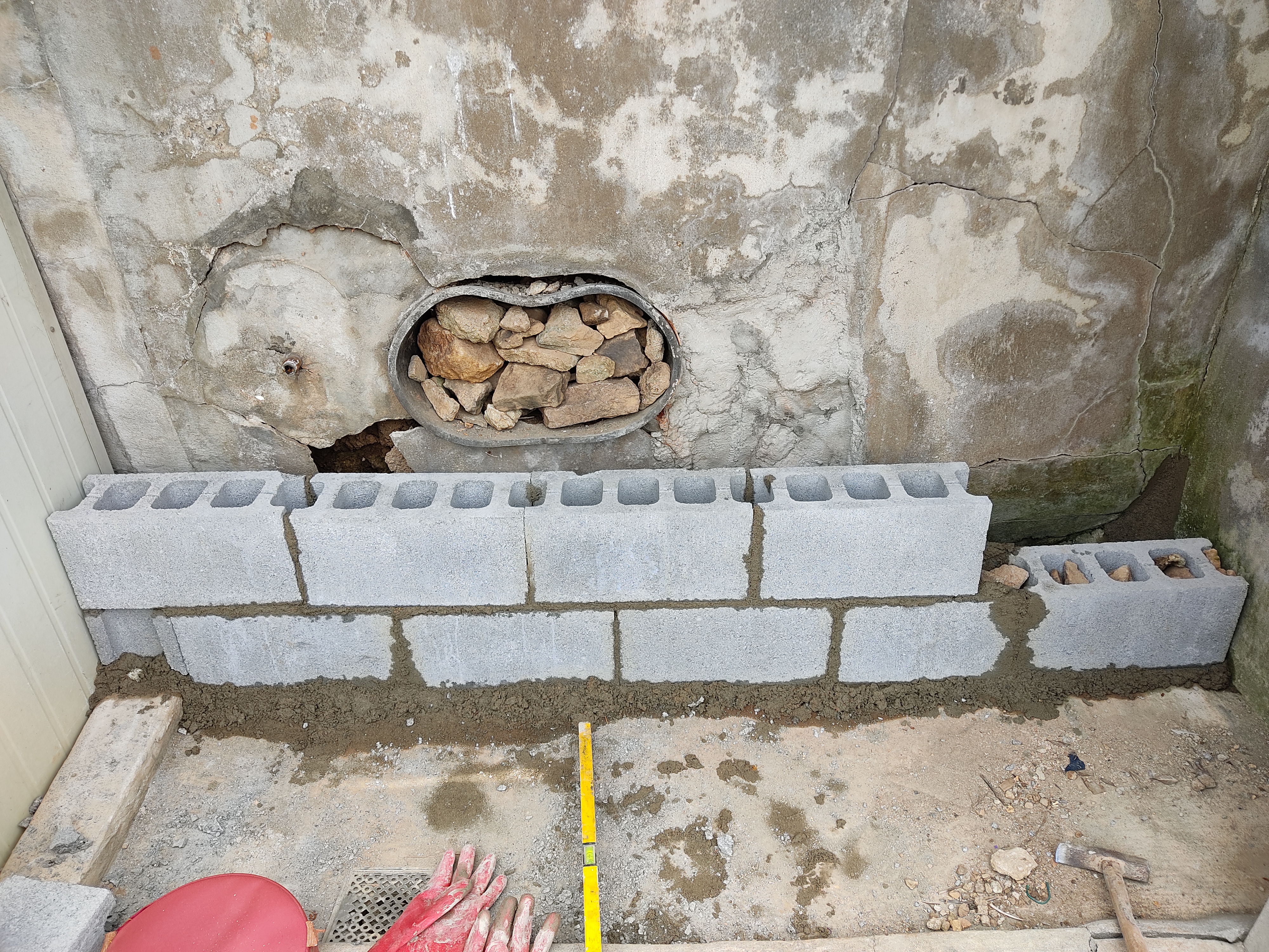 블럭 연결 부위는 시멘트나 돌을 채워야 튼튼함 중간 중간도 채워 주는게 좋음