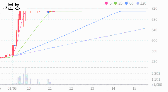 현재 주식의 종가가 최근 5일간의 평균 종가를 상회하고 있기 때문에, 단기적으로 상승 추세가 나타날 가능성이 있다고 판단할 수 있습니다.