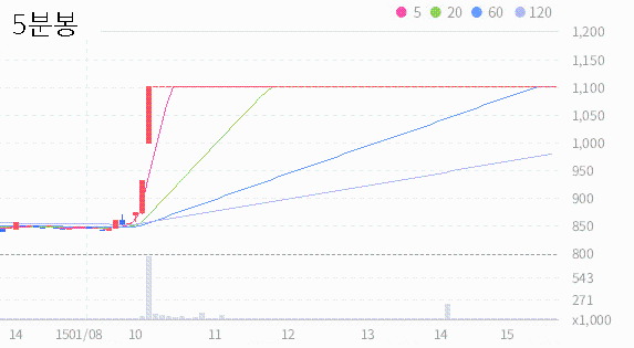 오늘 종가와 20일 이동평균선 사이의 이격도가 140%이므로 약세장이 아닌 경우 20일 이동평균선과의 이격도 상에서는 매도 신호로 볼 수있습니다.