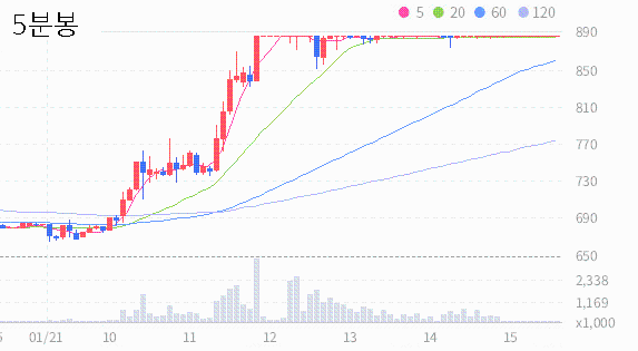 현재 주식의 종가가 최근 5일간의 평균 종가를 상회하고 있기 때문에, 단기적으로 상승 추세가 나타날 가능성이 있다고 판단할 수 있습니다.