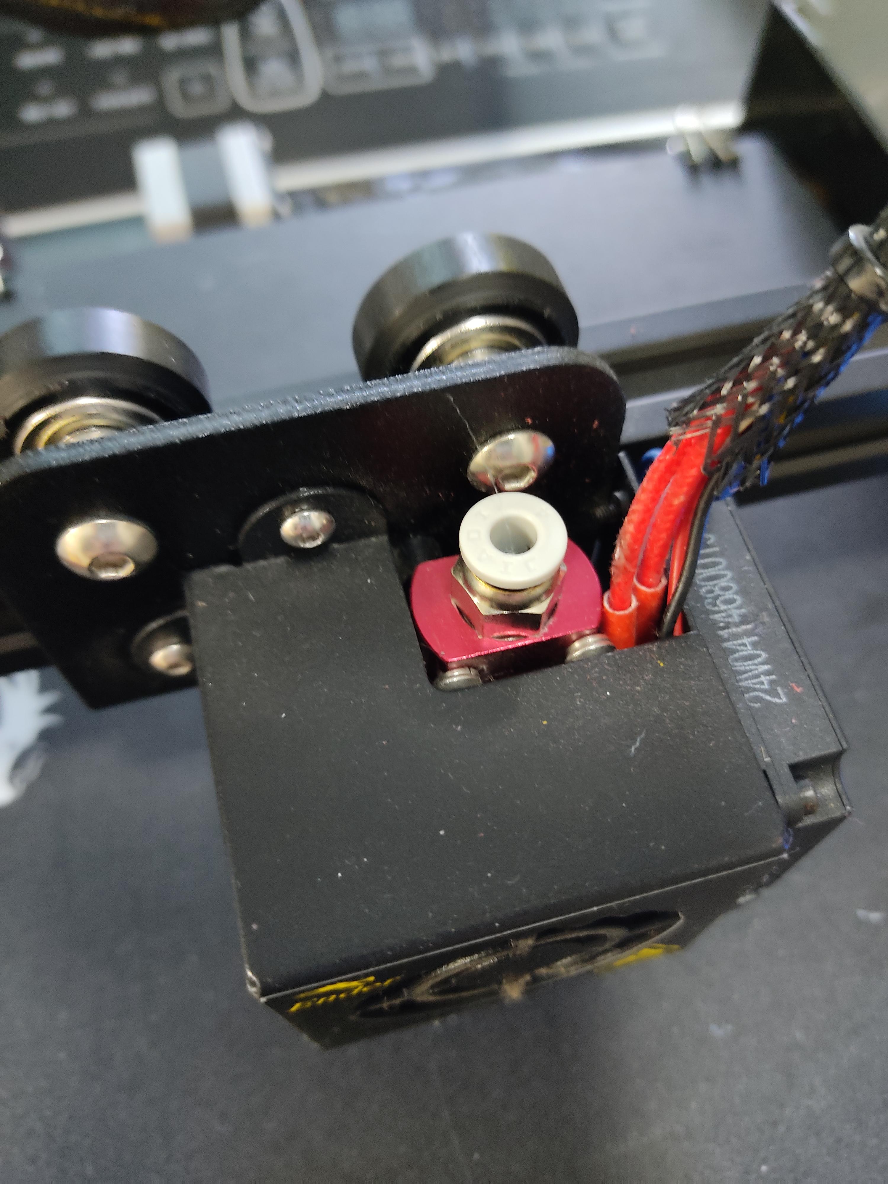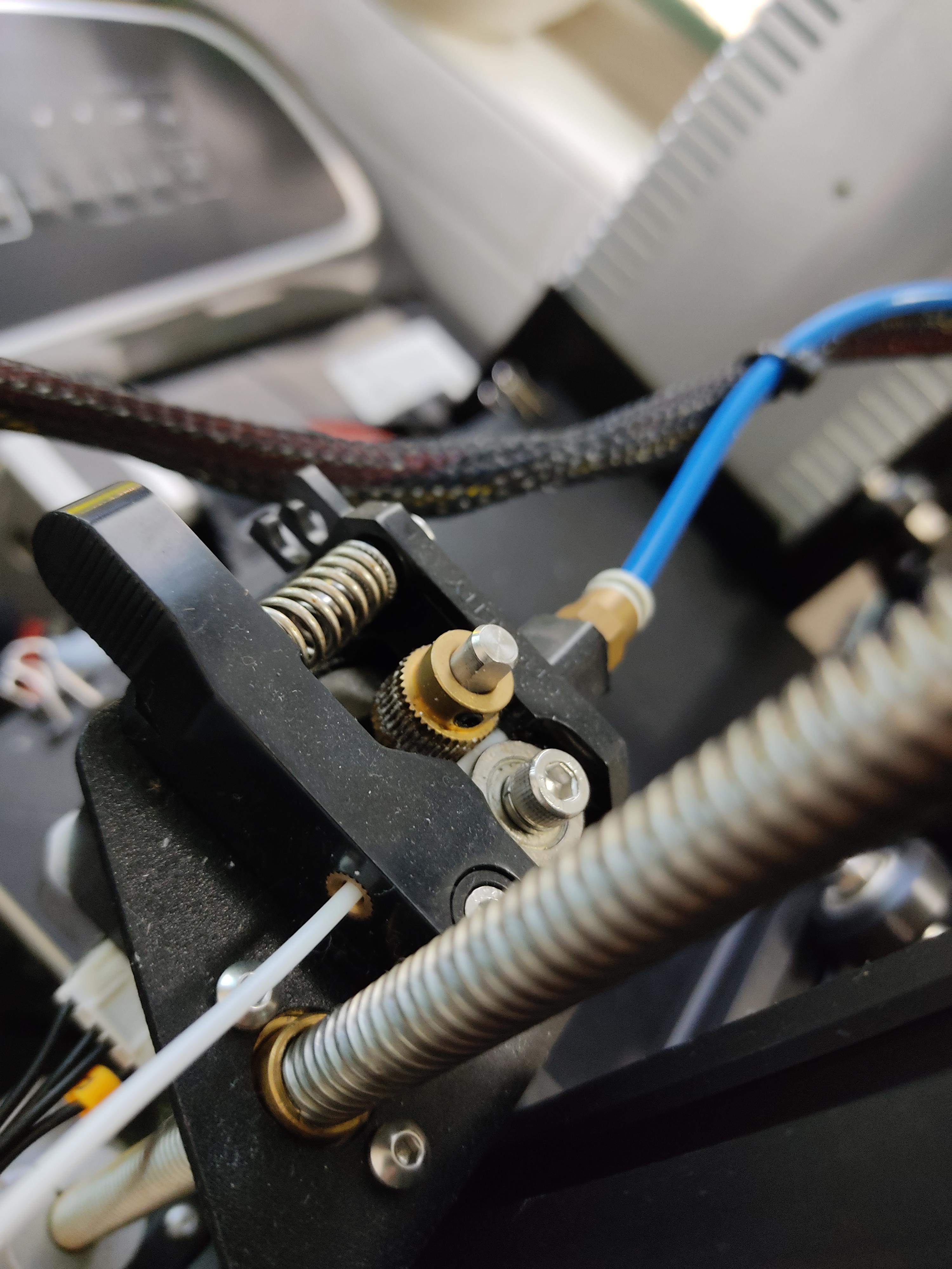 익스트루더 무브 명령을 보내도 필라멘트 밀어주는 노즐 모터는 회전하는데 안으로 들어가지 않는 것 같아서 노즐 온도를 220도까지 올려봐도 안들어 가길래 일단 풀어봄