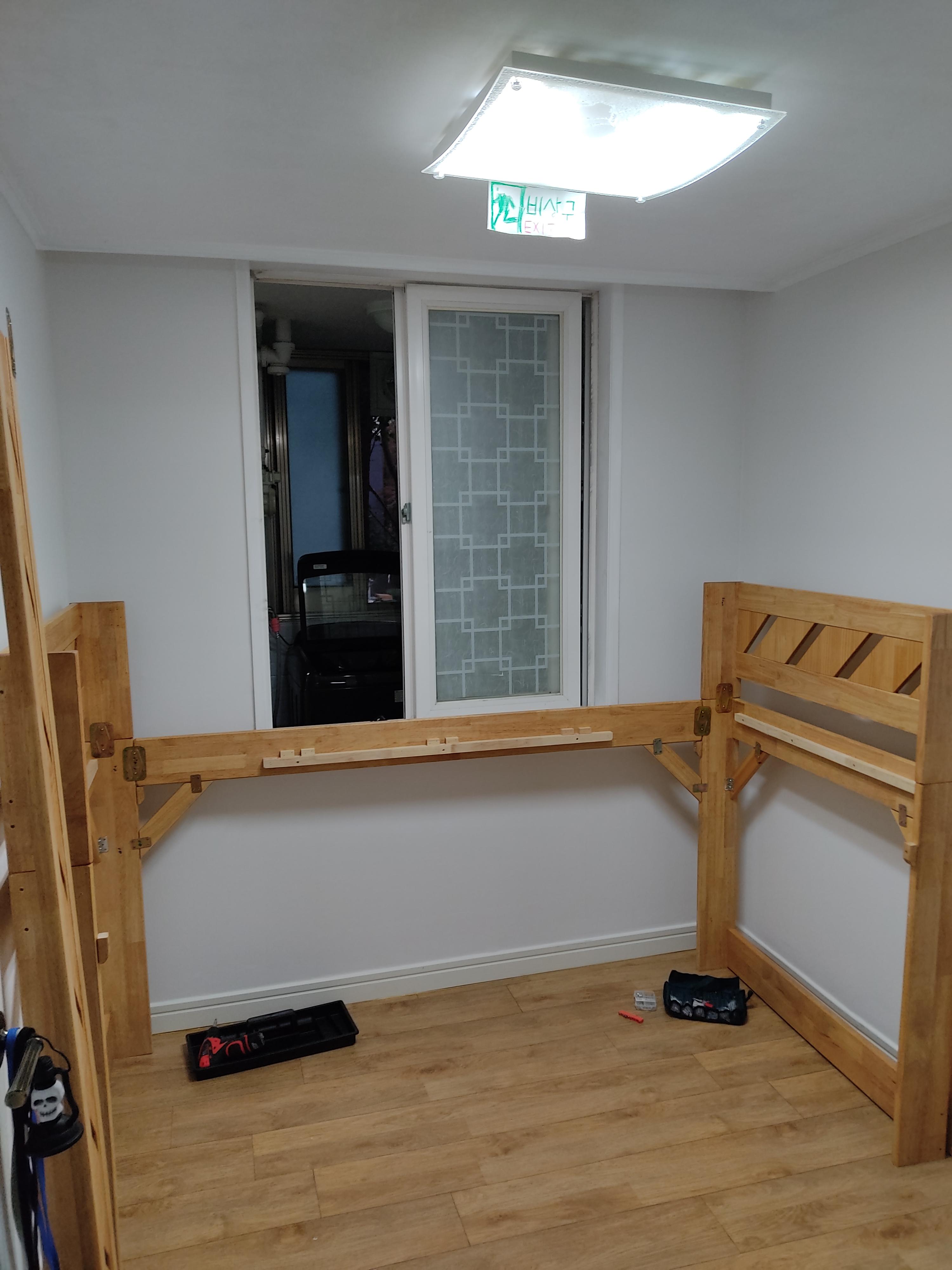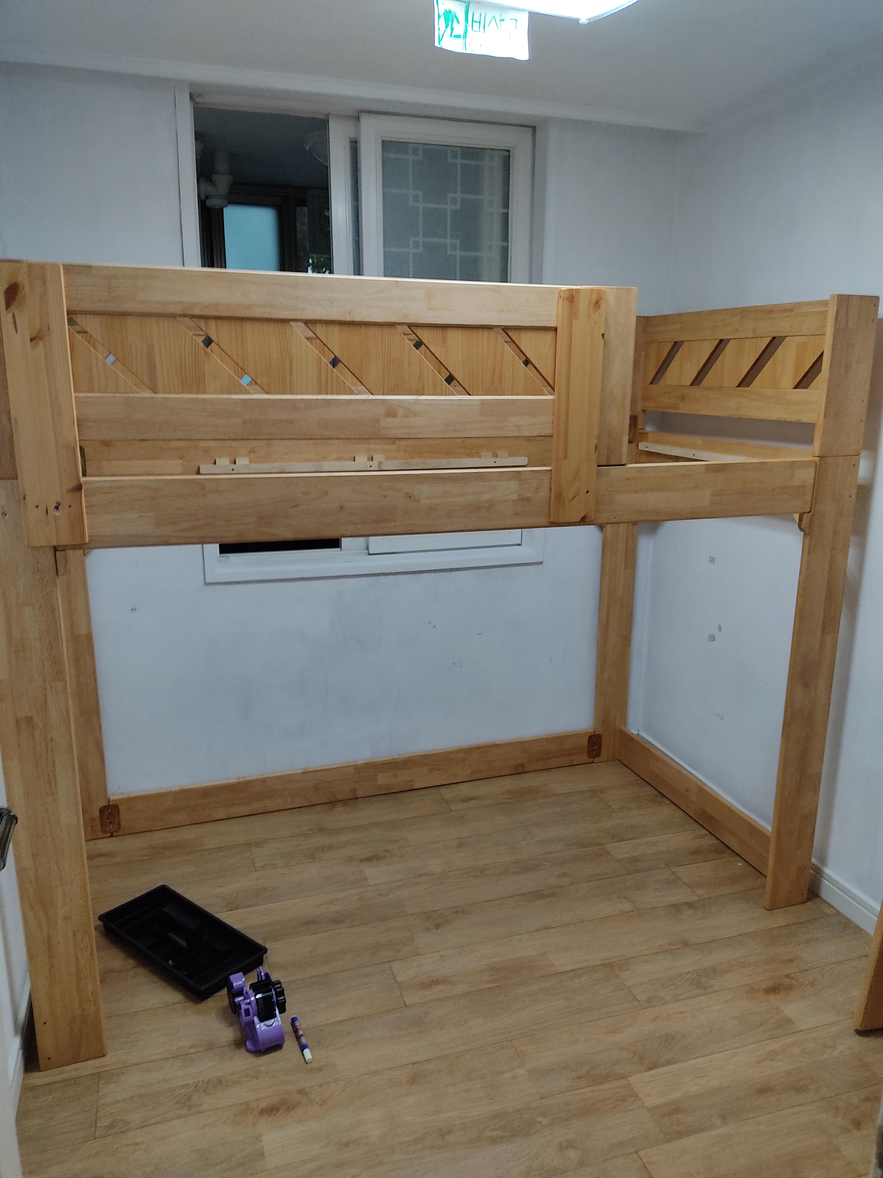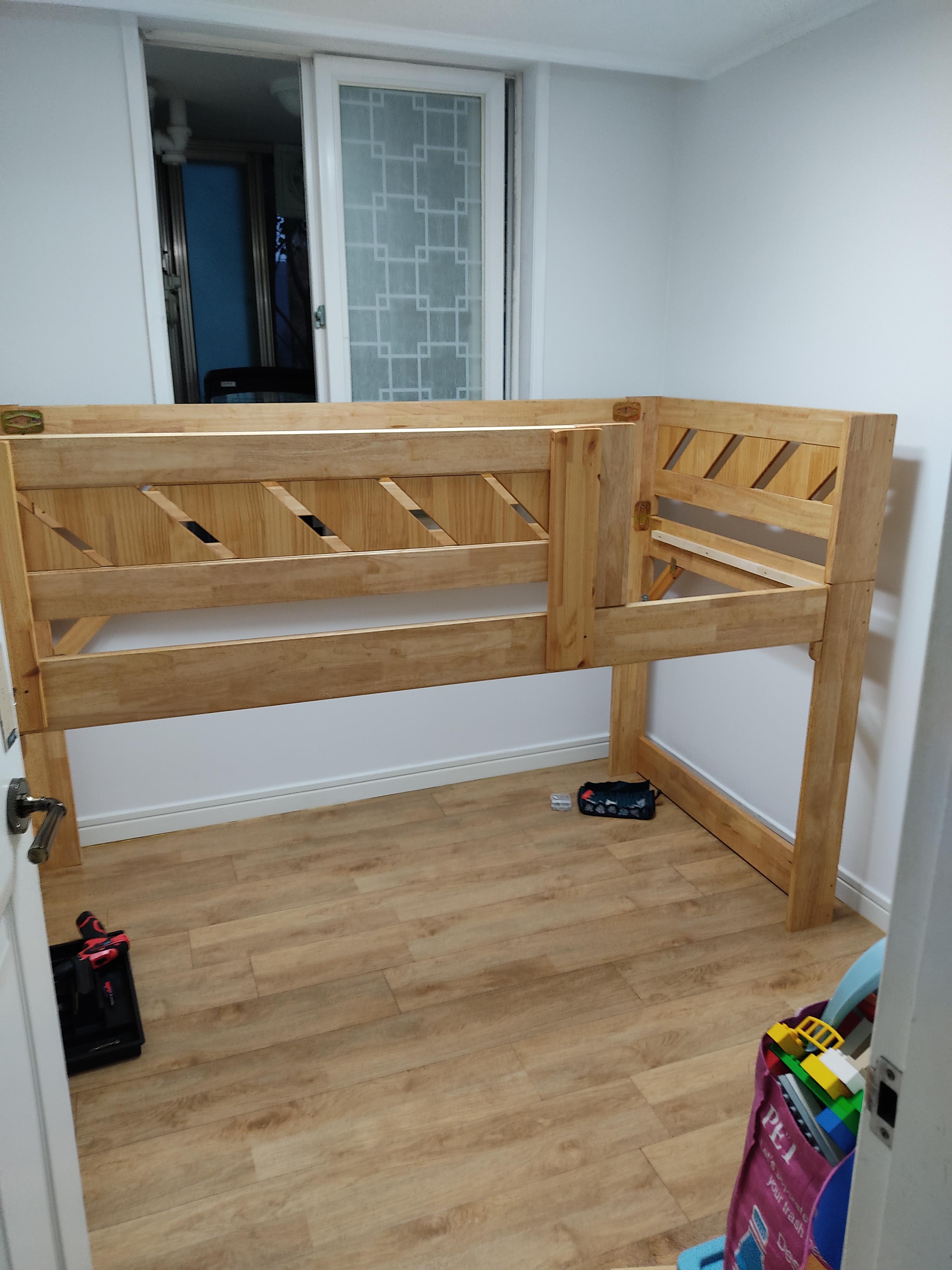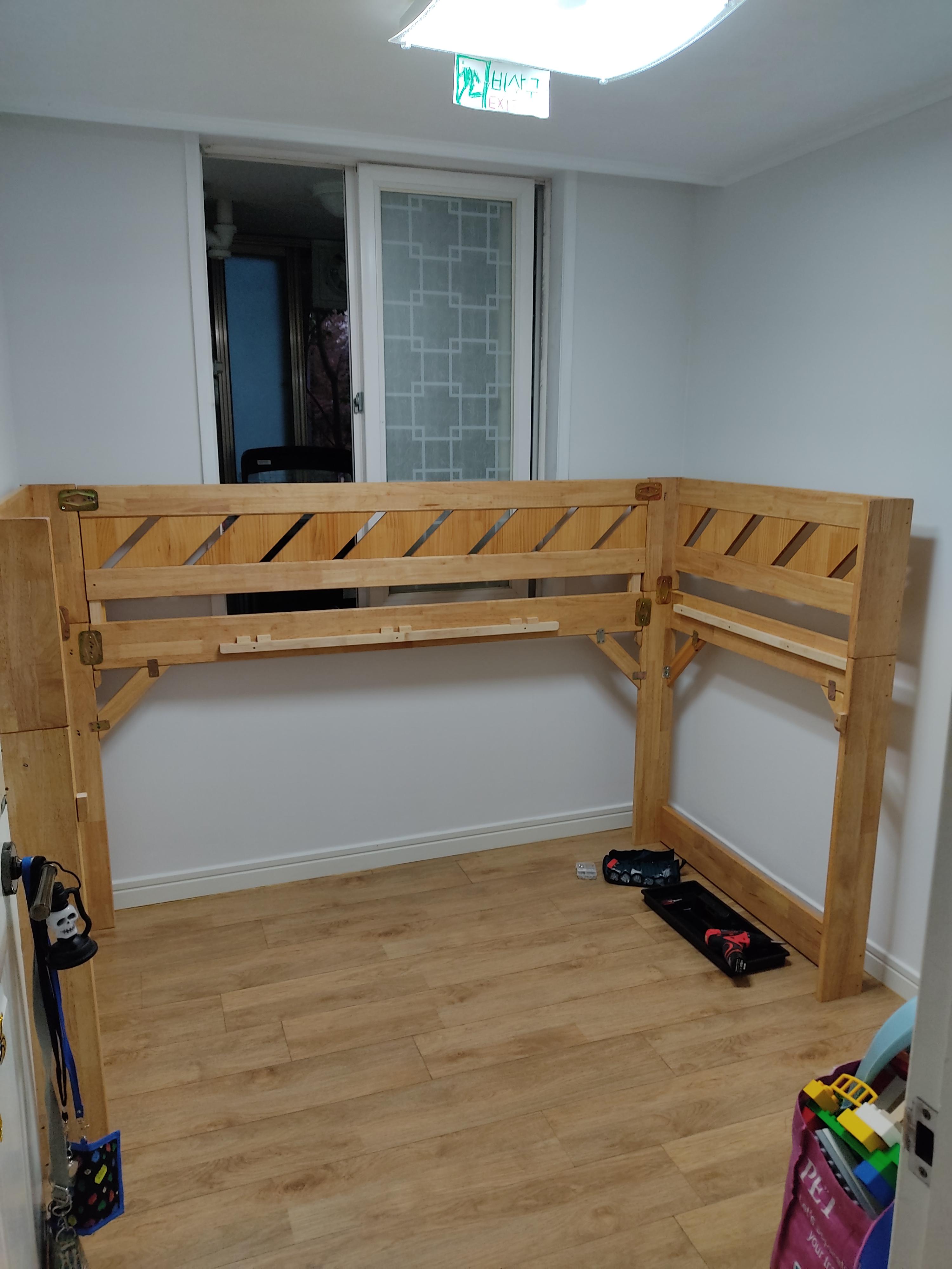 아이 2층 침대가 너무 높아서 오르내릴때 위험하고 힘들어 앉은 키를 고려해 35cm를 줄이기로 했다