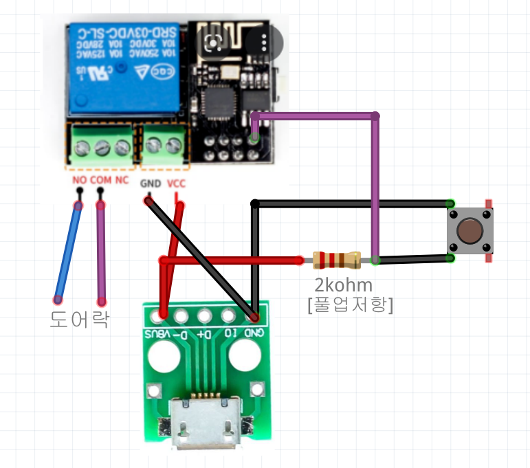 도어락 개조하는 방법은 오래되어서 사진이 없음. 원리는 열림버튼에서 선 두개를 빼와서 릴레이에 연결하는 구조임