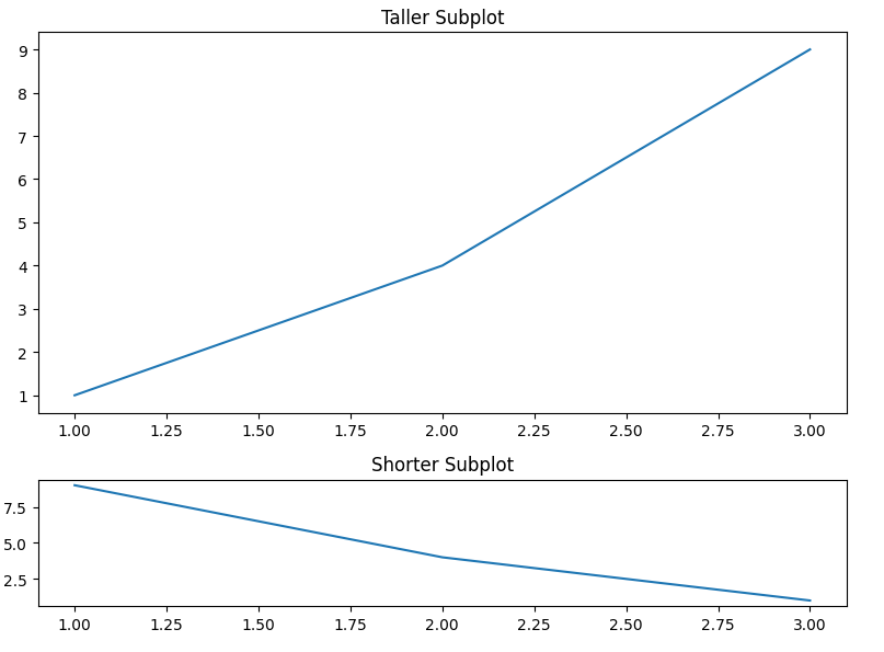 첫 번째 서브플롯이 두 번째 서브플롯보다 세 배 높게 그려집니다. 각각의 서브플롯에 제목이 추가됩니다.