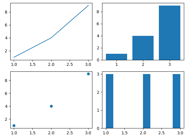 axs[0, 1].plot([1, 2, 3], [1, 4, 9])