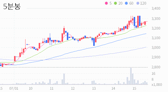 애드바이오텍의 2024.07.01 기준(장마감)현재 주가는 3300원이며, 이는 전일 종가인 2835원보다 465원 상승한 결과를 보여주고 있습니다.