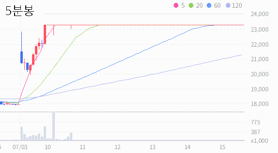 오늘 종가와 20일 이동평균선 사이의 이격도가 131%이므로 약세장이 아닌 경우 20일 이동평균선과의 이격도 상에서는 매도 신호로 볼 수있습니다.