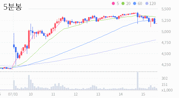 현재 주식의 종가가 최근 5일간의 평균 종가를 상회하고 있기 때문에, 단기적으로 상승 추세가 나타날 가능성이 있다고 판단할 수 있습니다.