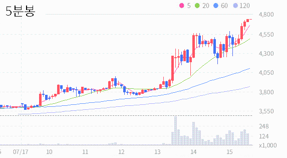 현재 주식의 종가가 최근 5일간의 평균 종가를 상회하고 있기 때문에, 단기적으로 상승 추세가 나타날 가능성이 있다고 판단할 수 있습니다.