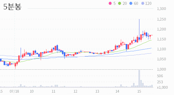 바이온의 종가는 1185원이며 바이온의 현재 주가는 20일 이동 평균선 및 볼린저 밴드 중심선보다 위에 위치하고 있습니다. 이는 최근의 주가 움직임이 상승세에 있음을 시사하며, 주가가 통상적인 평균 수준보다 높은 수준에 있음을 나타냅니다.