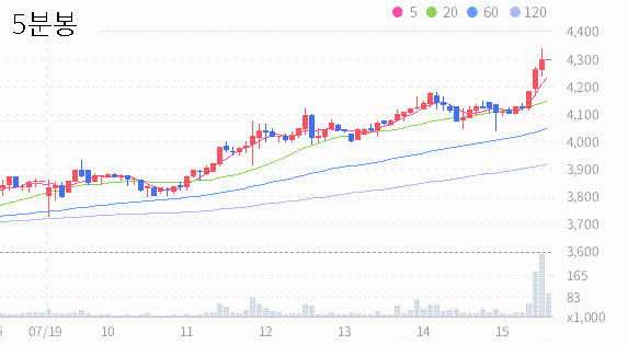 피플바이오의 2024.07.19 기준(장마감)현재 주가는 4400원이며, 이는 전일 종가인 3875원보다 525원 상승한 결과를 보여주고 있습니다.