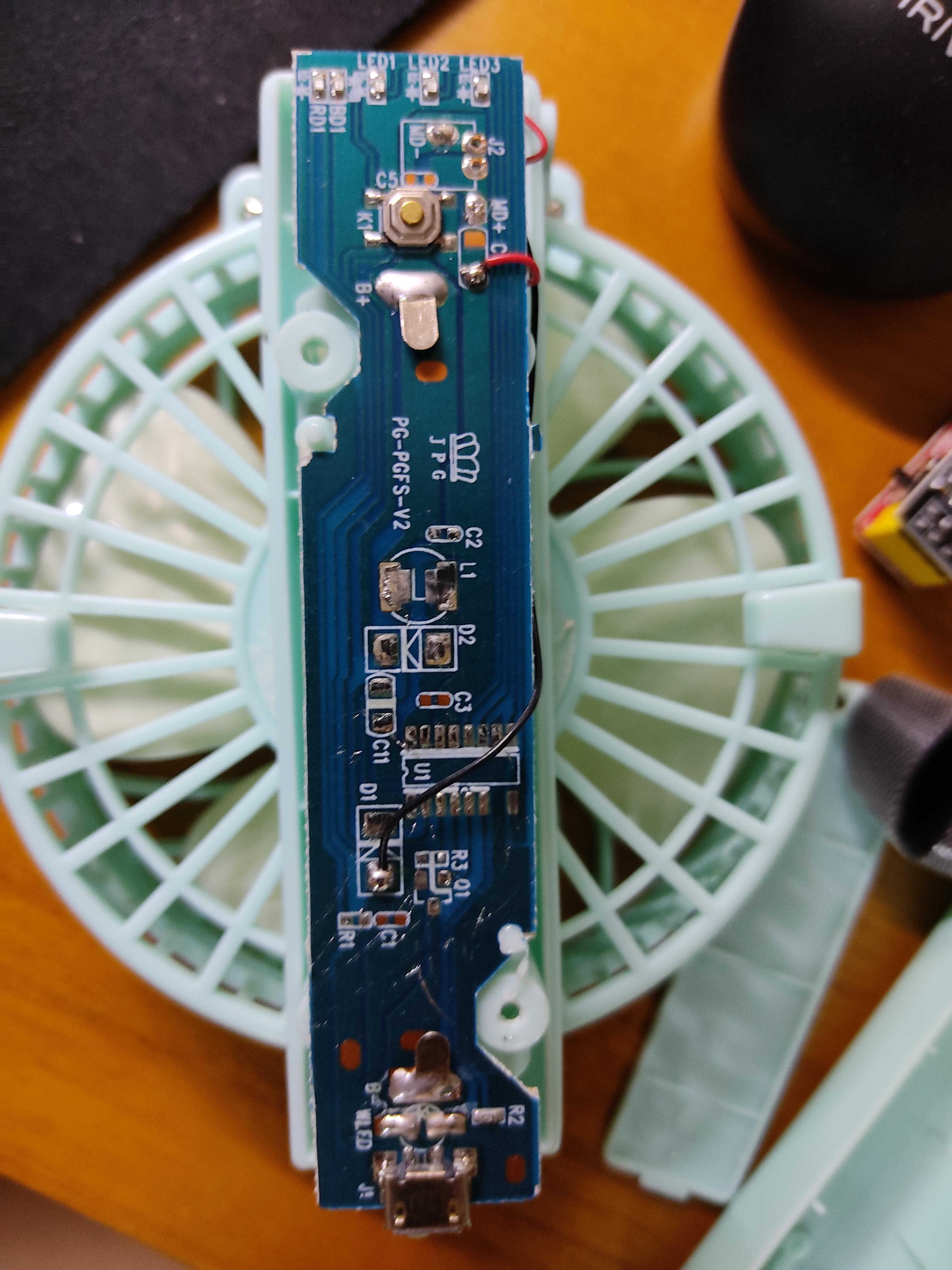 만물상닷컴에서 천원에 구입한 선풍기로 18650 자리는 있지만 회로이상으로 마이크로5핀 전원만 가능한 상태로 판매하는 제품임