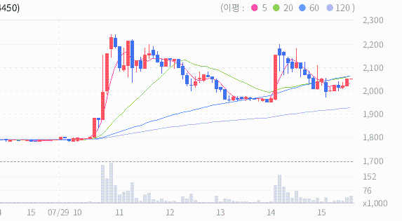그린생명과학의 종가는 2130원이며 그린생명과학의 현재 주가는 장기적인 흐름을 나타내는 지표 중 하나인 240일 이동 평균선 위에 위치하고 있습니다. 이는 과거 240일 동안의 평균 주가를 나타내는 이동 평균선을 기준으로 주가가 위에 위치하고 있음을 의미합니다. 이러한 상황은 장기적인 관점에서 주가가 상승 추세에 있을 수 있다는 긍정적인 신호로 해석될 수 있습니다.