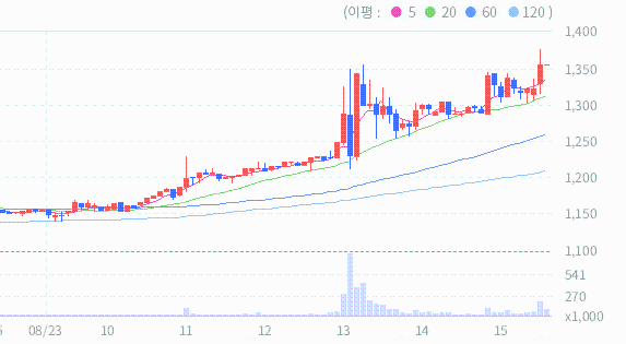 최근 5일간 외국인(보유비율 : 1.39%)은 63243주만큼 순매수를 하였으며 기관은 822주만큼 순매도하는 양상을 보이고 있습니다.