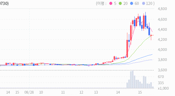 최근 5일 종가들의 평균은 3868원입니다.