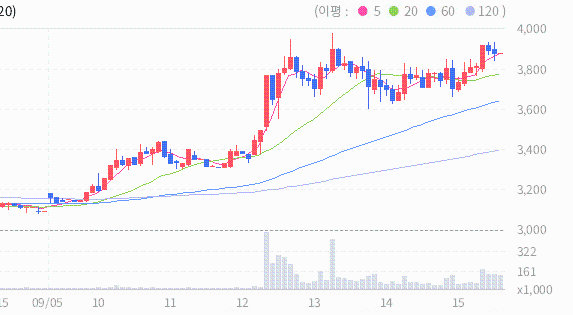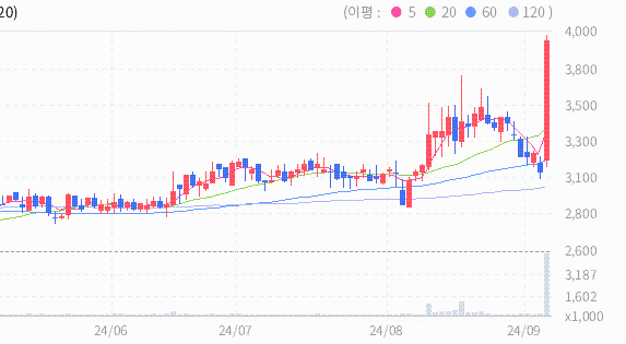 디케이앤디의 2024.09.05 기준(장마감)현재 주가는 3950원이며, 이는 전일 종가인 3100원보다 850원 상승한 결과를 보여주고 있습니다.