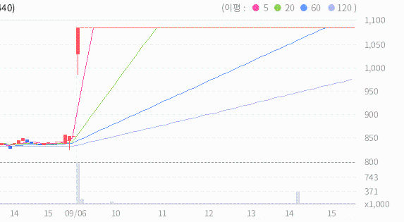 오늘 종가와 20일 이동평균선 사이의 이격도가 141%이므로 약세장이 아닌 경우 20일 이동평균선과의 이격도 상에서는 매도 신호로 볼 수있습니다.