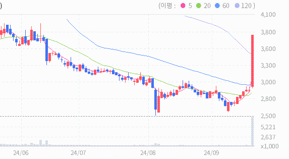 화천기계의 2024.09.24 기준(장마감)현재 주가는 3780원이며, 이는 전일 종가인 2910원보다 870원 상승한 결과를 보여주고 있습니다.