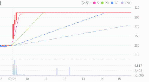최근 5일 종가들의 평균은 244원입니다.