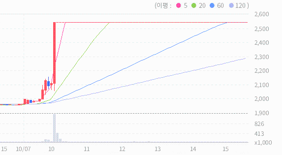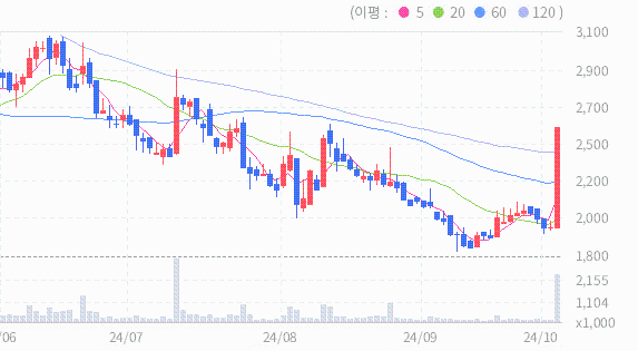 노을의 2024.10.07 기준(장마감)현재 주가는 2545원이며, 이는 전일 종가인 1960원보다 585원 상승한 결과를 보여주고 있습니다.
