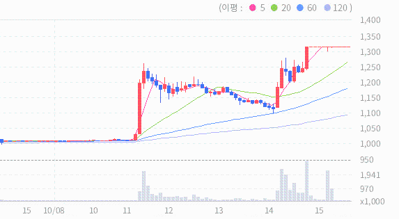 오늘 종가와 20일 이동평균선 사이의 이격도가 143%이므로 약세장이 아닌 경우 20일 이동평균선과의 이격도 상에서는 매도 신호로 볼 수있습니다.