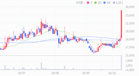 나이벡의 2024.10.14 기준(장마감)현재 주가는 23450원이며, 이는 전일 종가인 18040원보다 5410원 상승한 결과를 보여주고 있습니다.
