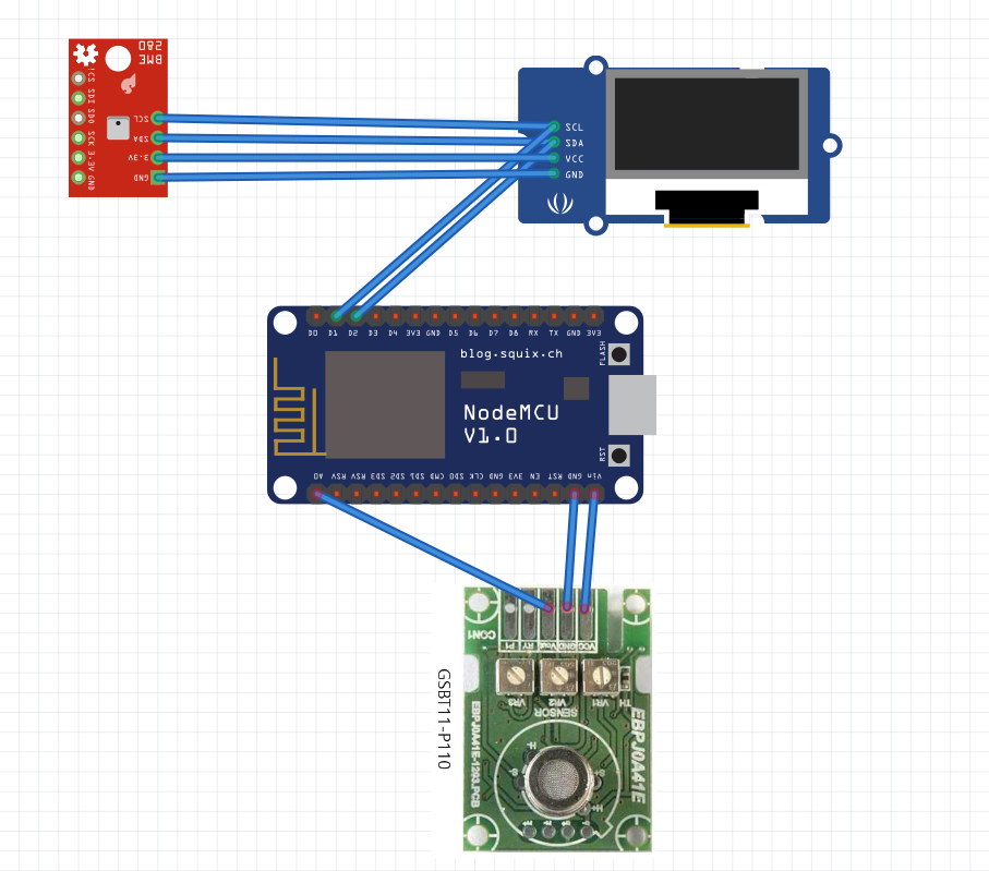 voc 센서는 5v로 동작하므로 nodemcu의 vin에서 5v를 가져와 공급한다