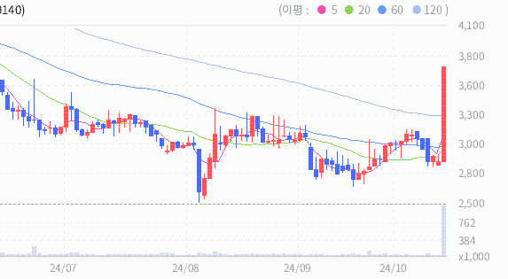 넥스턴바이오의 2024.10.17 기준(장마감)현재 주가는 3735원이며, 이는 전일 종가인 2875원보다 860원 상승한 결과를 보여주고 있습니다.