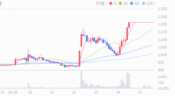 최근 5일 종가들의 평균은 986원입니다.