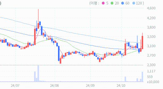 피코그램의 2024.10.22 기준(장마감)현재 주가는 3470원이며, 이는 전일 종가인 2965원보다 505원 상승한 결과를 보여주고 있습니다.