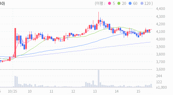 피플바이오의 종가는 4185원이며 피플바이오의 현재 주가는 장기적인 흐름을 나타내는 지표 중 하나인 240일 이동 평균선 위에 위치하고 있습니다. 이는 과거 240일 동안의 평균 주가를 나타내는 이동 평균선을 기준으로 주가가 위에 위치하고 있음을 의미합니다. 이러한 상황은 장기적인 관점에서 주가가 상승 추세에 있을 수 있다는 긍정적인 신호로 해석될 수 있습니다.
