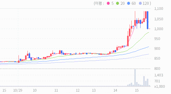 소니드의 종가는 981원이며 소니드의 현재 주가는 20일 이동 평균선 및 볼린저 밴드 중심선보다 위에 위치하고 있습니다. 이는 최근의 주가 움직임이 상승세에 있음을 시사하며, 주가가 통상적인 평균 수준보다 높은 수준에 있음을 나타냅니다.
