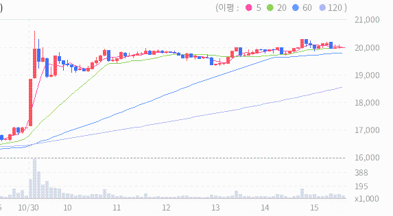 네이처셀의 종가는 20000원이며 네이처셀의 현재 주가는 장기적인 흐름을 나타내는 지표 중 하나인 240일 이동 평균선 위에 위치하고 있습니다. 이는 과거 240일 동안의 평균 주가를 나타내는 이동 평균선을 기준으로 주가가 위에 위치하고 있음을 의미합니다. 이러한 상황은 장기적인 관점에서 주가가 상승 추세에 있을 수 있다는 긍정적인 신호로 해석될 수 있습니다.
