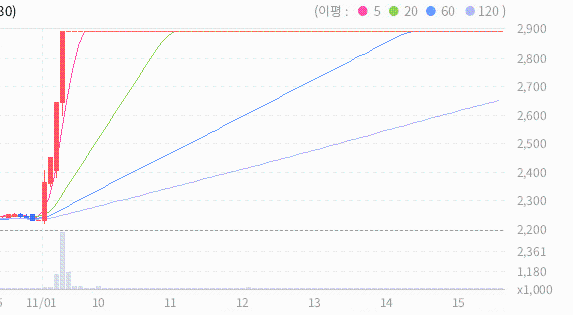 금일 종가가 장기 이동평균선을 돌파한 것은 주가의 강력한 지지선을 넘어선 긍정적인 신호로 해석할 수 있습니다. 이러한 모습은 향후 주가 흐름에 긍정적인 영향을 미칠 것으로 예상됩니다.