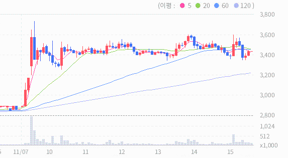 일승의 2024.11.07 기준(장마감)현재 주가는 3420원이며, 이는 전일 종가인 2885원보다 535원 상승한 결과를 보여주고 있습니다.