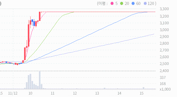 이화공영의 2024.11.12 기준(장마감)현재 주가는 3260원이며, 이는 전일 종가인 2510원보다 750원 상승한 결과를 보여주고 있습니다.