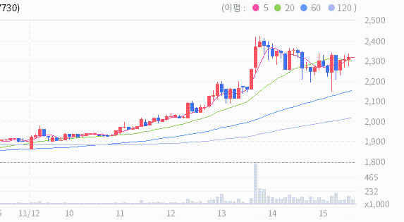 금일 종가가 장기 이동평균선을 돌파한 것은 주가의 강력한 지지선을 넘어선 긍정적인 신호로 해석할 수 있습니다. 이러한 모습은 향후 주가 흐름에 긍정적인 영향을 미칠 것으로 예상됩니다.