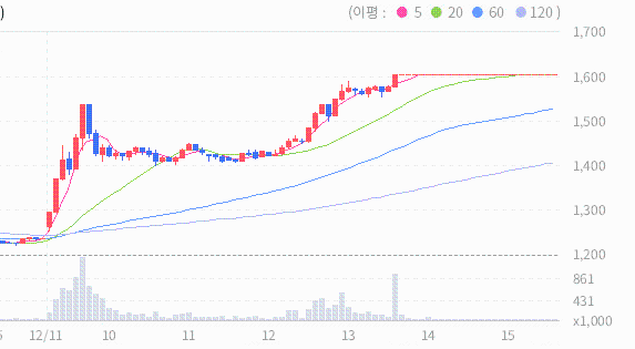 씨씨에스의 2024.12.11 기준(장마감)현재 주가는 1605원이며, 이는 전일 종가인 1235원보다 370원 상승한 결과를 보여주고 있습니다.