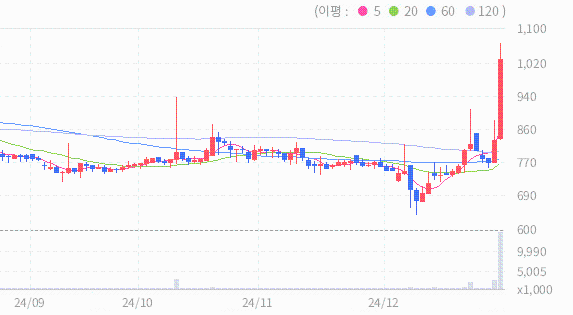 파인텍의 2024.12.30 기준(장마감)현재 주가는 1026원이며, 이는 전일 종가인 823원보다 203원 상승한 결과를 보여주고 있습니다.