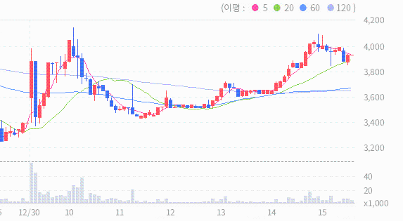캐리의 종가는 3935원이며 캐리의 주가는 현재 20일 이동 평균선과 볼린저 밴드 중심선보다 아래에 위치하고 있습니다. 이는 최근의 주가 움직임이 하락세에 있음을 시사하며, 주가가 일반적인 평균 수준보다 낮은 수준에 위치하고 있음을 나타냅니다.