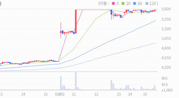 금일 종가가 장기 이동평균선을 돌파한 것은 주가의 강력한 지지선을 넘어선 긍정적인 신호로 해석할 수 있습니다. 이러한 모습은 향후 주가 흐름에 긍정적인 영향을 미칠 것으로 예상됩니다.