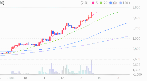 랩지노믹스의 2025.01.06 기준(장마감)현재 주가는 3515원이며, 이는 전일 종가인 2705원보다 810원 상승한 결과를 보여주고 있습니다.