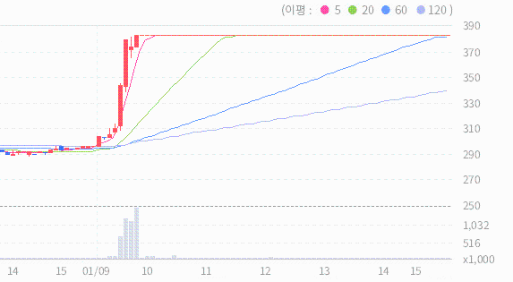 최근 5일 종가들의 평균은 312원입니다.